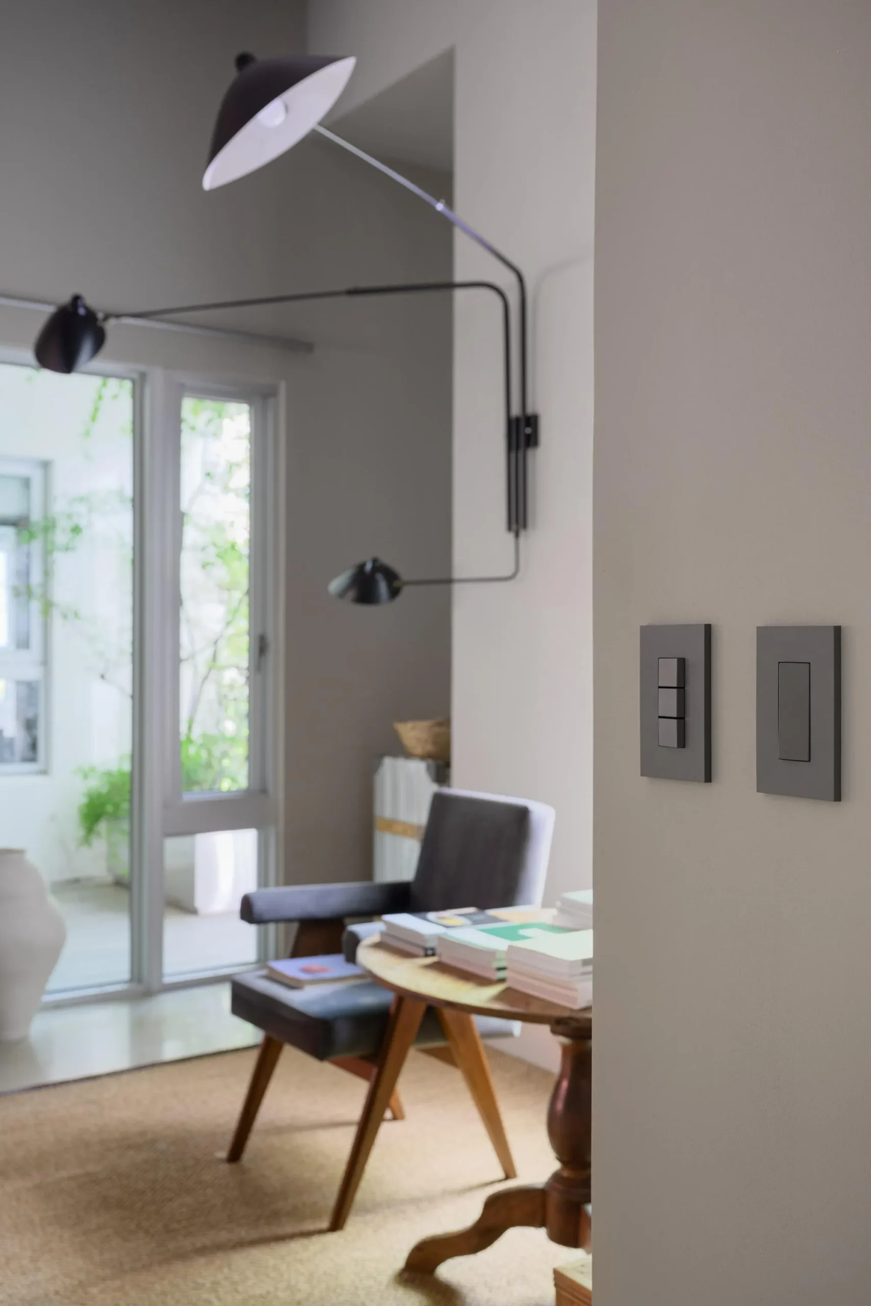 最終選擇了神保電器系列開關,並選擇了灰色,搭配整個空間的沈穩調性,神保設計簡約,在空間中不會覺得很搶眼,但是作為獨立單品又極具設計感,按壓的手感及反饋也很好,到目前為止每天看到都還是會很滿意的選擇。
