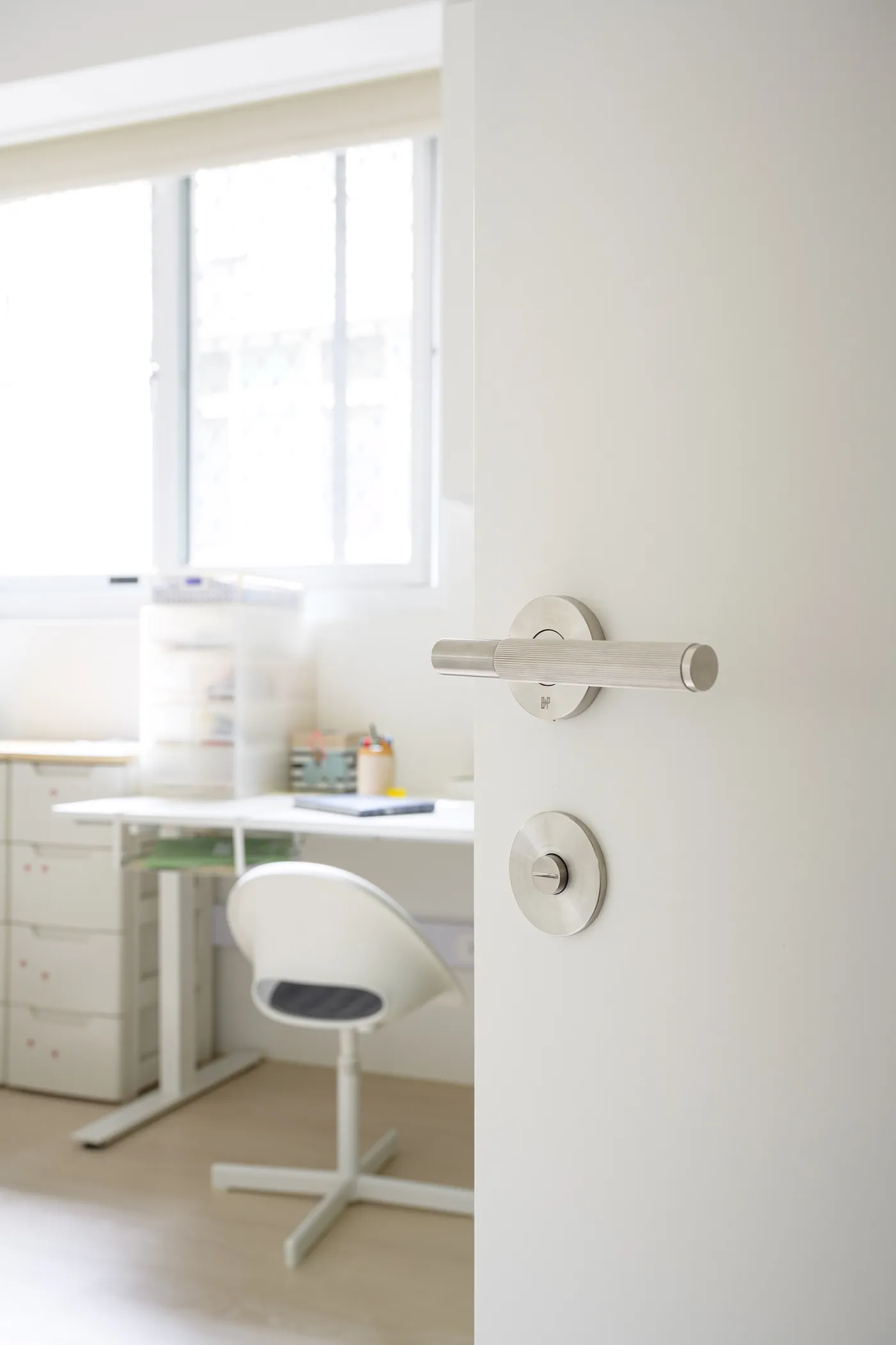 當時去流石店裡一眼就看到這個漂亮門把,抓握試用後,便跟設計師說想選用這個品牌,握起來手感很細緻,安靜的在那邊也覺得很有氣質,發現其實這種每天都要摸到的東西,挑質感好一些的,整天在家使用到的時候也會感到心情很好。
